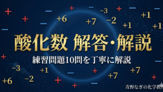 酸化数の練習問題10問の解答・解説を丁寧に説明。NH₃・H₂O₂・CuSO₄など例外問題もステップ別に解説。間違えた問題をここで完全攻略しよう!