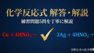銅と熱濃硫酸・銅と濃硝酸・銀と希硝酸・KMnO₄とKI・K₂Cr₂O₇とH₂O₂の化学反応式をSTEPごとに丁寧に解説。イオン反応式から化学反応式への変換を完全マスターしましょう!