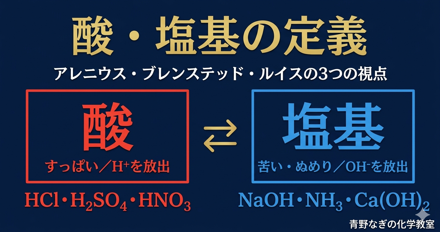 酸・塩基の定義を3つの視点で解説!アレニウス・ブレンステッド・ルイス【高校化学】