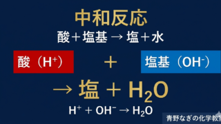 酸・塩基・中和 中和反応をわかりやすく解説!反応式の作り方と塩の種類【高校化学】 中和反応の基本(H⁺+OH⁻→H₂O)から反応式の作り方まで丁寧に解説。強酸+強塩基・弱酸+強塩基・強酸+弱塩基の5パターンを例示。生成する塩の種類と名前の一覧付き!練習問題5問で確認しよう。 2026.04.02 酸・塩基・中和